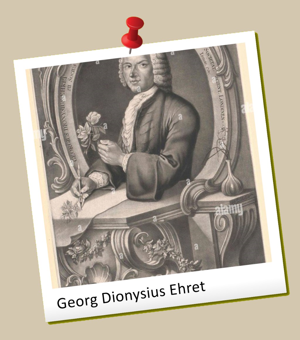 Já no século XVIII, um dos maiores ilustradores botânicos foi o alemão Georg Dionysius Ehret (1708–1770), que trabalhou ao lado de grandes cientistas como Carl Linnaeus e desenvolveu um estilo que equilibrava precisão científica e estética elegante. Suas aquarelas mostravam cada detalhe das plantas de forma clara e harmoniosa, servindo tanto à ciência quanto à arte. Essenciais para o estudo das plantas.