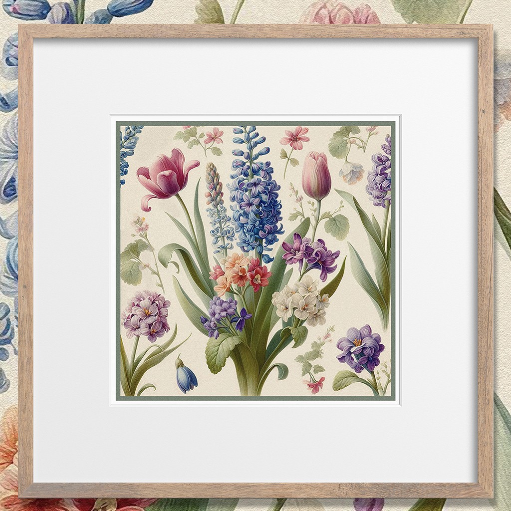 Quadro floral: Jacinto Azul, da Linha Florais Vintage com 8 imagens de pôsteres para você escolher.
